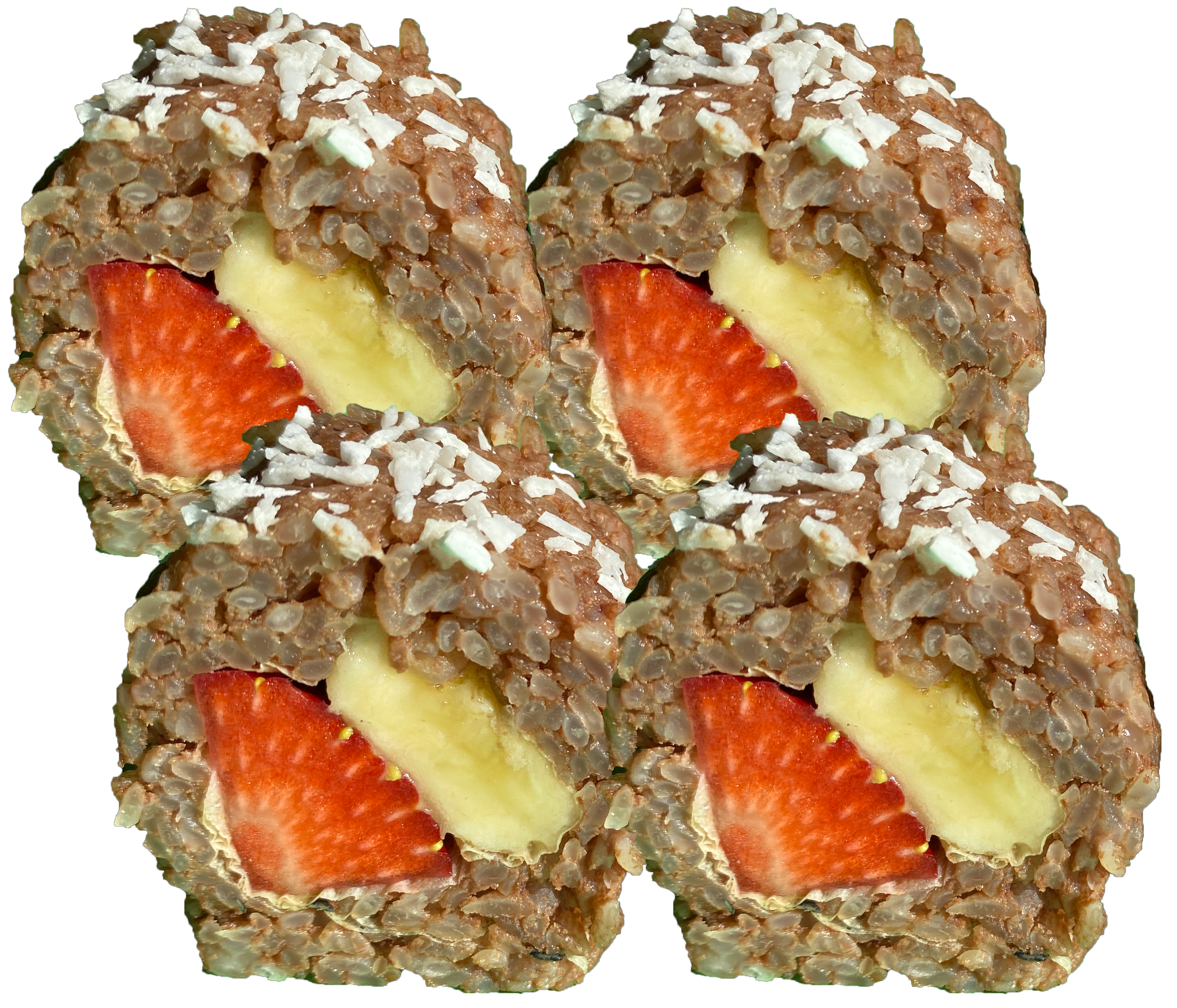 4 Stück – Erdbeeren und Banane, Schokoladenreis, außen mit